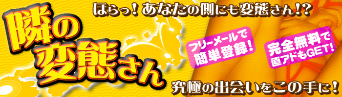 「隣の変態さん」は、アブノーマルな出会いを探している人のためのサイトです。匂いフェチ、コスプレ好き等ちょっと変わった趣味のある人が多く登録しているサイトです。フェチの人との関係はなかなか普段の生活では探しづらいものです。いろんな趣味のある人が多く登録しているサイトです。なかなか言い出せない変わった趣味!でもあなたのお隣にも、きっと変態さんはいる!「隣の変態さん」は、アブノーマルな男女が近場でパートナーを見つける為に参加して来るコミュニティスペースです。日常から離れ、非現実的な出会いとプレイを楽しみましょう。